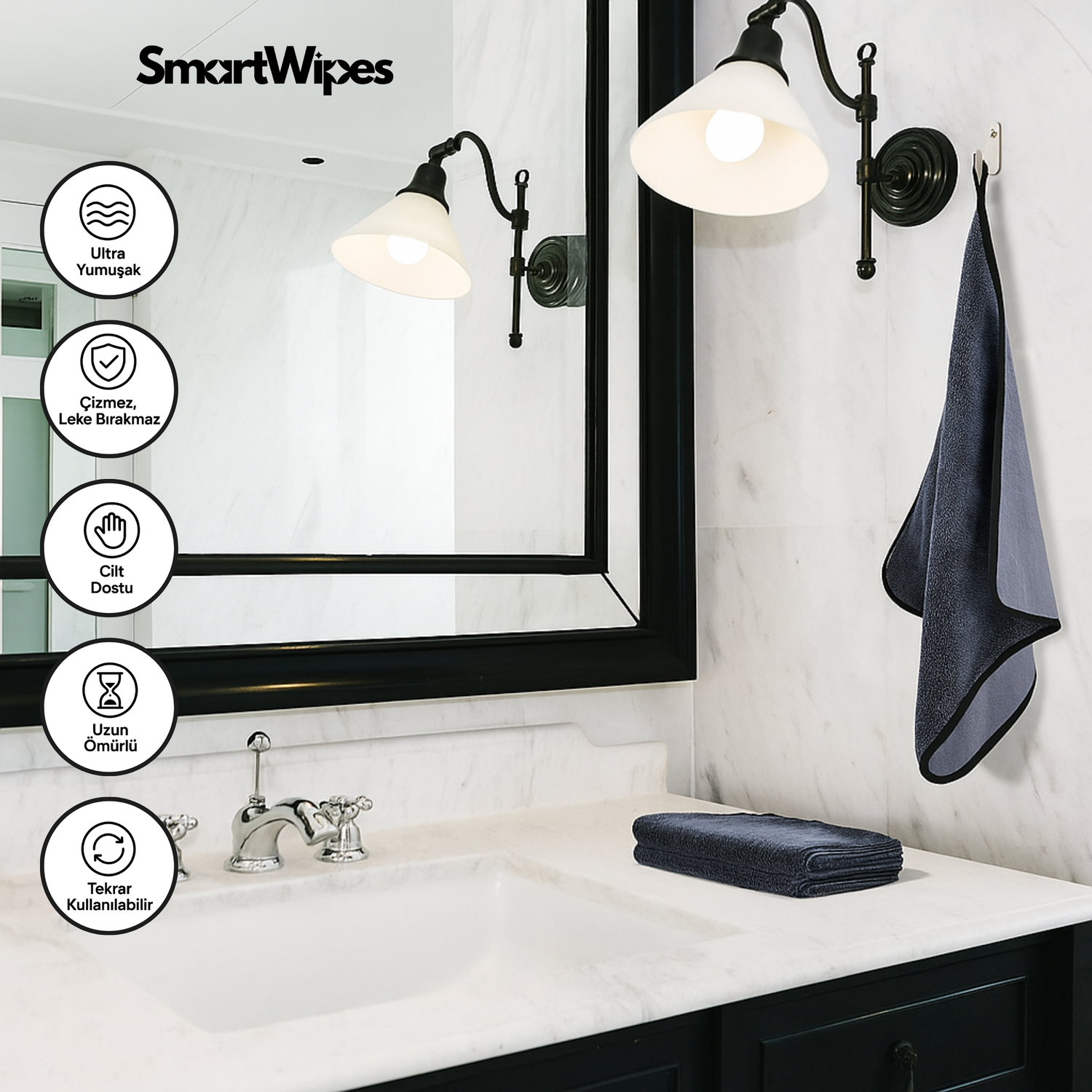 SmarWipes™ ürünleri karmaşık çözümler sunmaz sadece işe yarayan, güvenilir sonuçlar verir. Ultra emici mikrofiber dokusuyla her yüzeyi tek hamlede siler, iz ve kalıntı bırakmaz. Abartı vaatler yerine; sade, pratik ve sürdürülebilir temizlik deneyimi sunuyoruz.